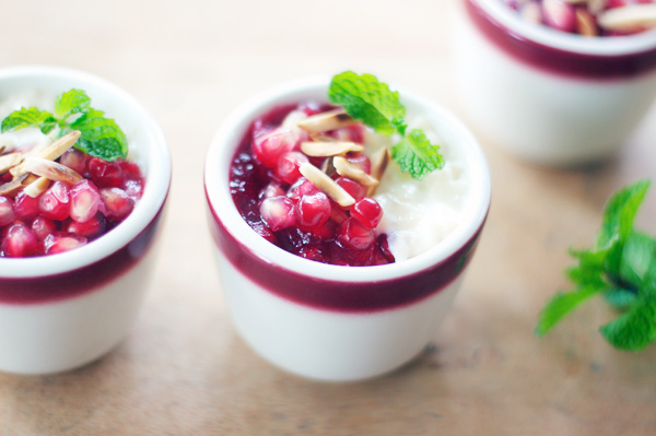 And another night, we enjoyed coconut rice pudding with pomegranate seeds and cranberry sauce, scraping the pot to the last bit of rice.