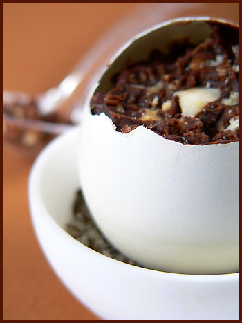 How did you make the egg, or is it a real egg? Anyway, I think I will pass this time :D, I bought a box of pralines saturday (again), and I think I have enough chocolate in my blood for a week now :D. The pralines were excellent by the way, from Belgium : http://www.bouchardlescaut.com/en/node/10 , really excellent :).
